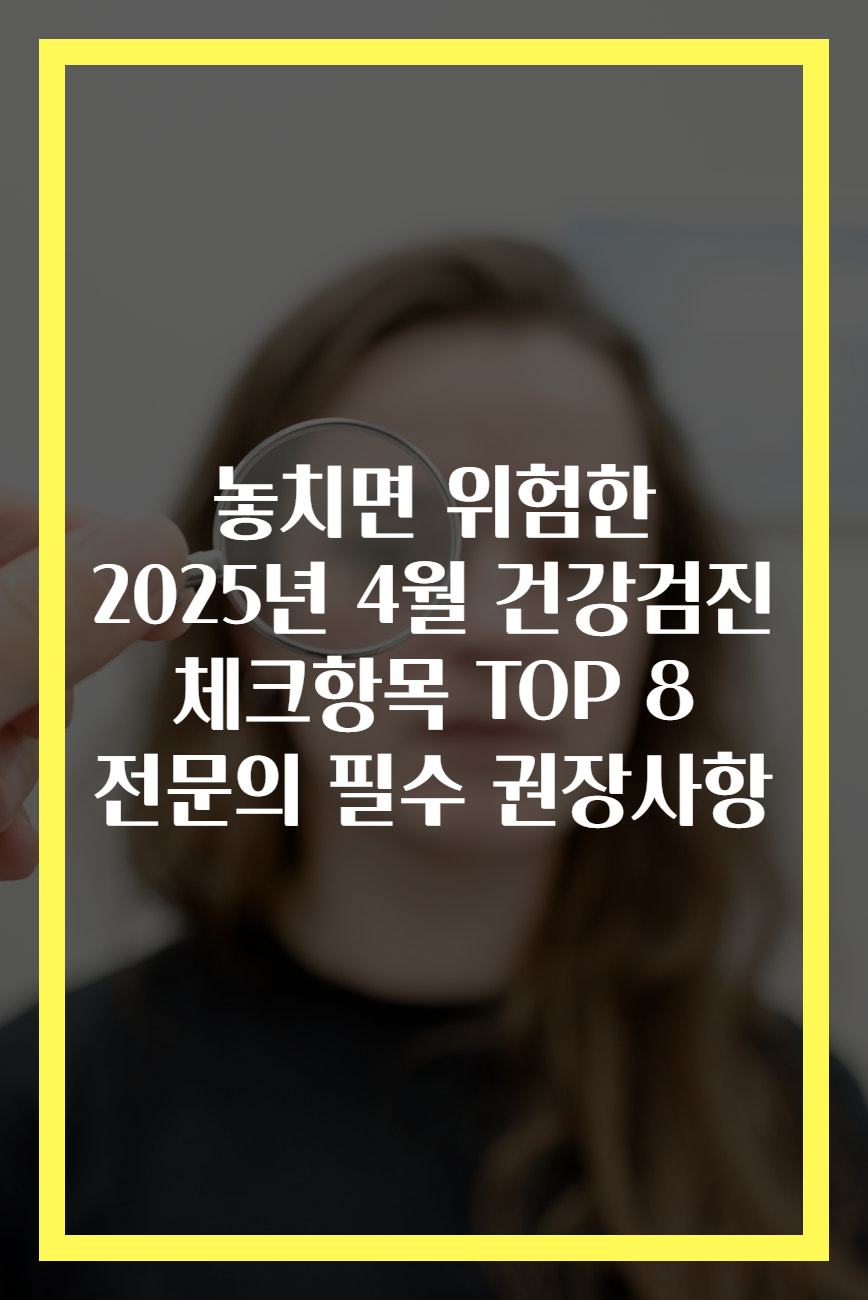 Meta Description: 2025년 4월 놓치면 위험할 건강검진 체크항목 TOP 8. 종합 검사로 우리의 건강을 지키자!