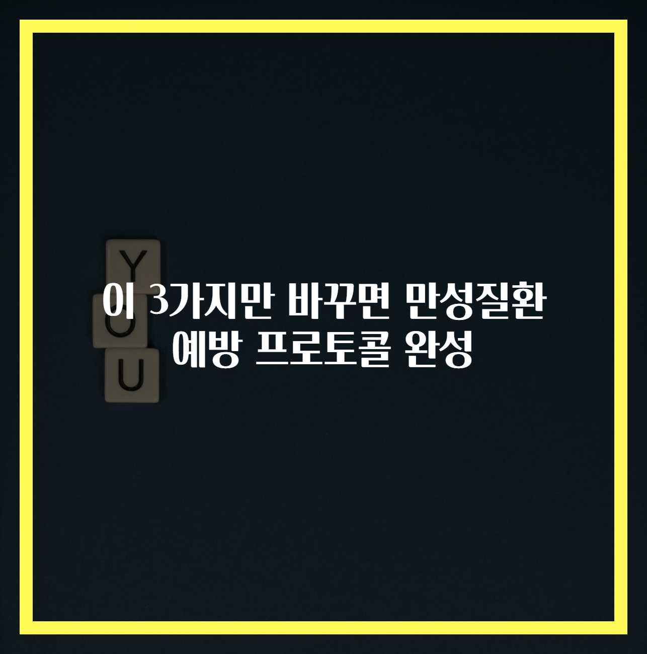 만성질환 예방 프로토콜은 세 가지 간단한 변화를 통해 이루어질 수 있습니다: 건강한 식단, 규칙적인 운동, 스트레스 관리.